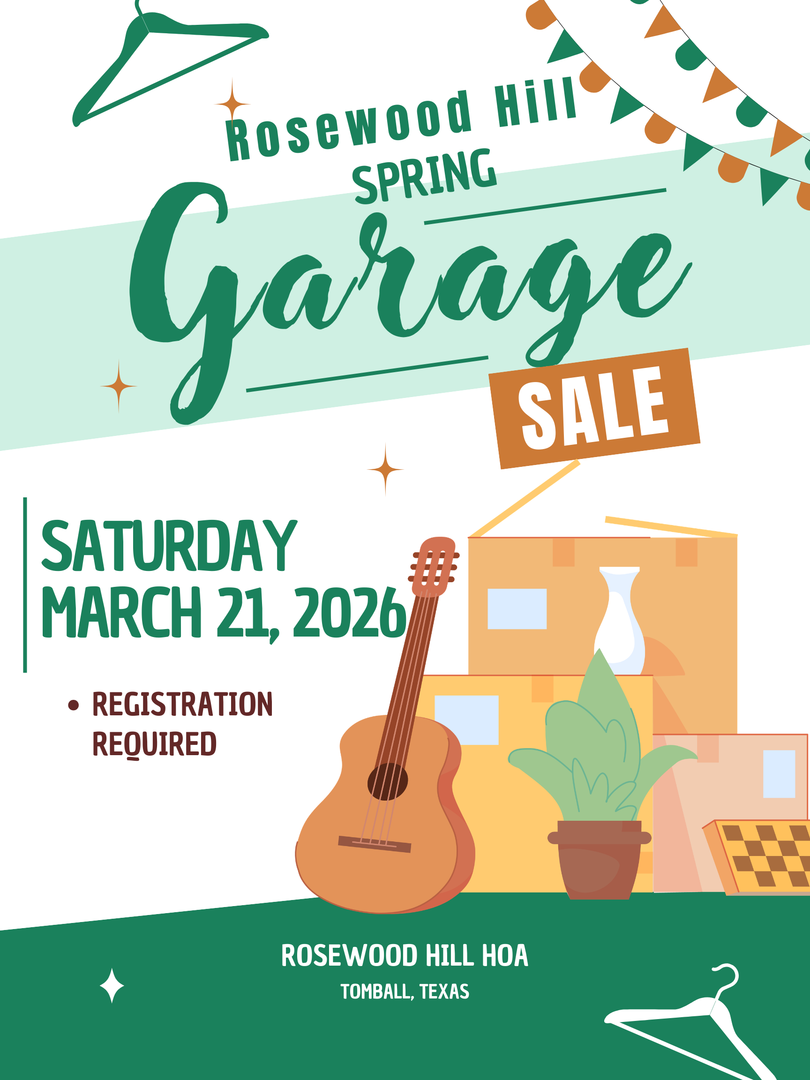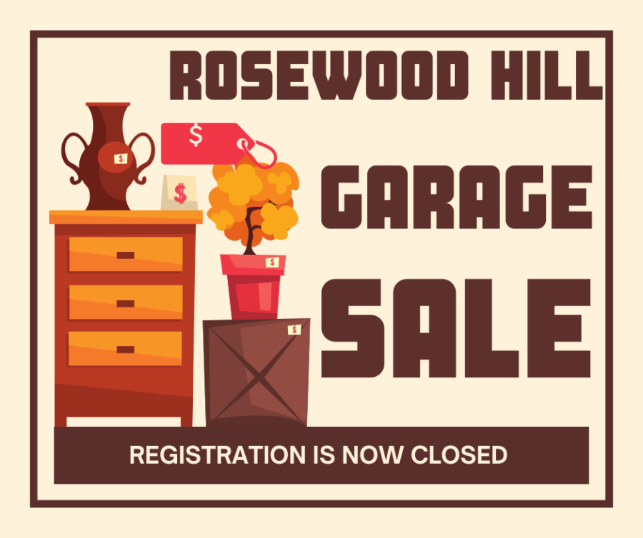 Garage Sales are only permitted in Rosewood Hill in the Spring and Fall as organized by the